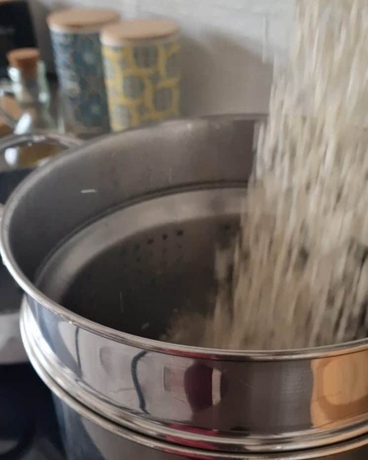Pour commencer, faites cuire le riz dans une grande quantité d’eau salée. Pendant ce temps, préparez la sauce tomate :