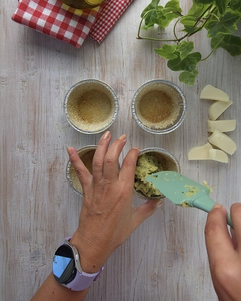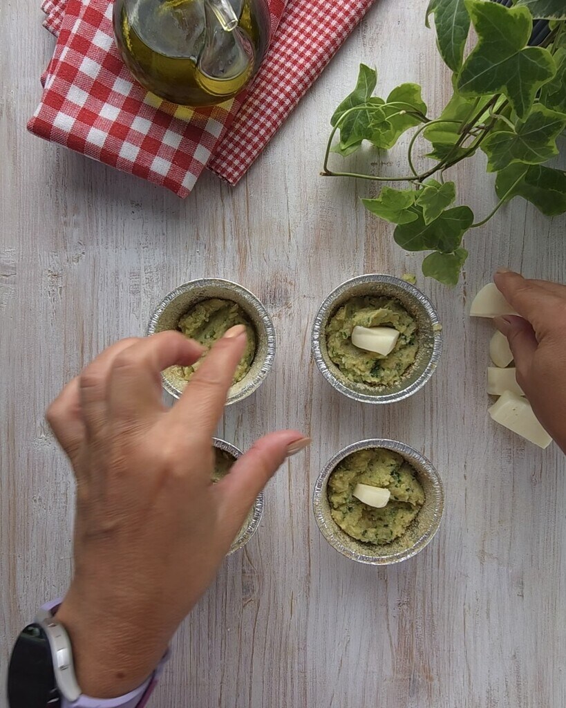 Ajoutez un petit morceau de fromage au centre de chaque moule.
