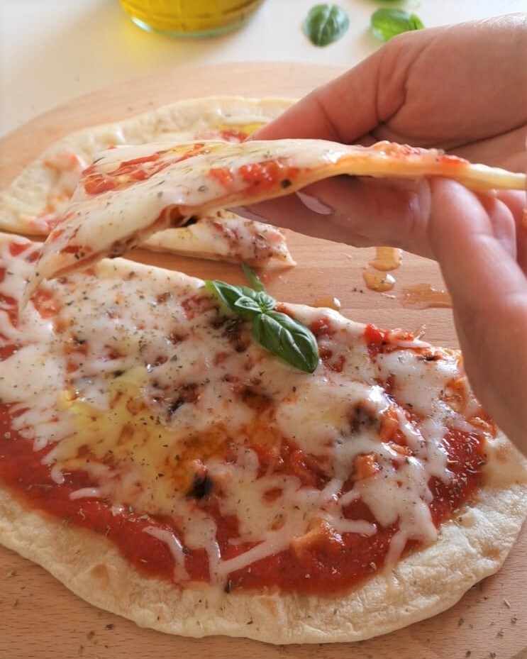 Piadi pizza prête en 5 minutes, un sauve-déjeuner parfait! La recette est hyper simple, j’ai utilisé ma recette infaillible de piadines à l’huile, que vous pouvez préparer quelques semaines à l’avance et les congeler déjà cuites, afin de toujours les avoir prêtes.