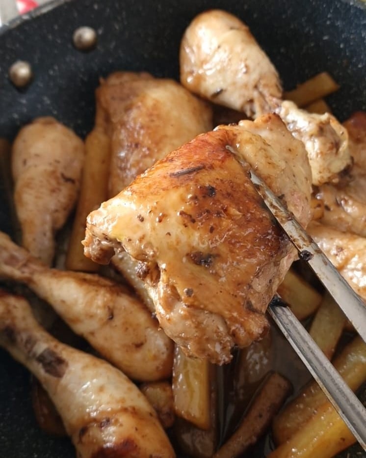 - 1 kg poulet (en morceaux: cuisses, poitrine et pilons)