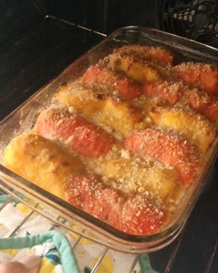 À la fin, sortez les roulades du four et servez-les chaudes.