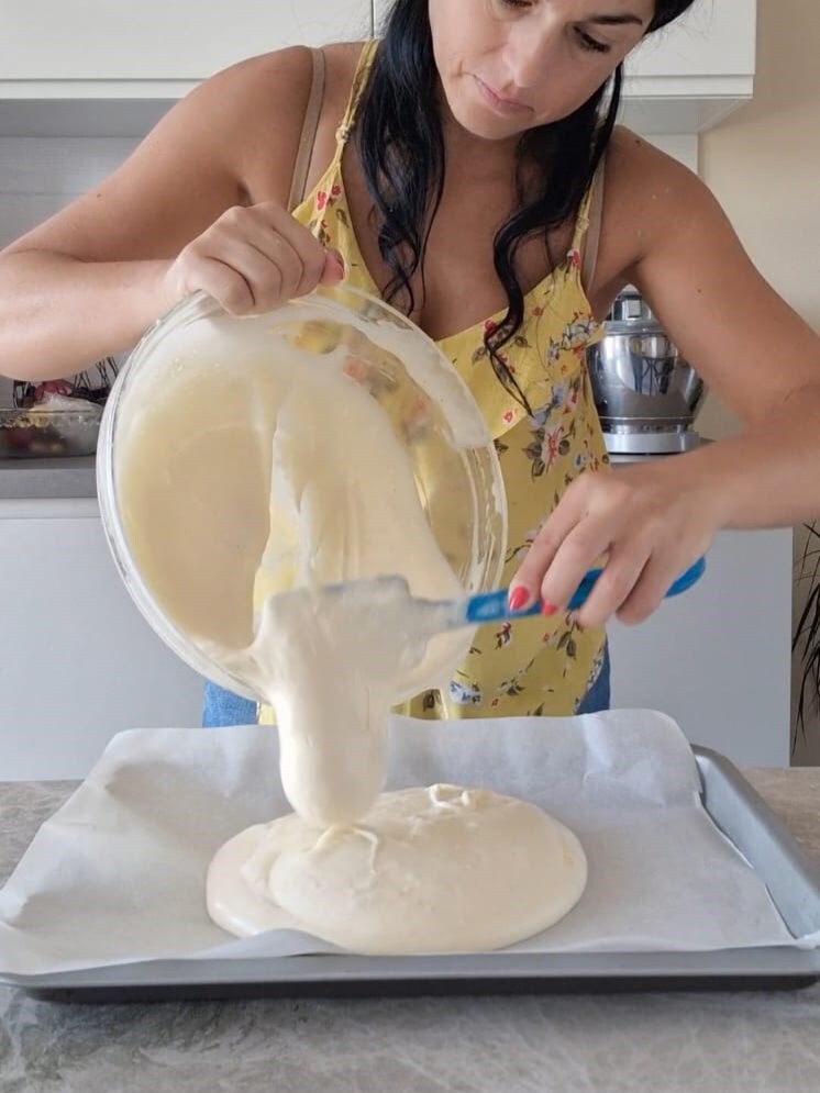 Versez le mélange dans un moule de 30×40 cm recouvert de papier sulfurisé. Faites cuire dans un four préchauffé en mode statique à 190°C pendant 15 minutes.
