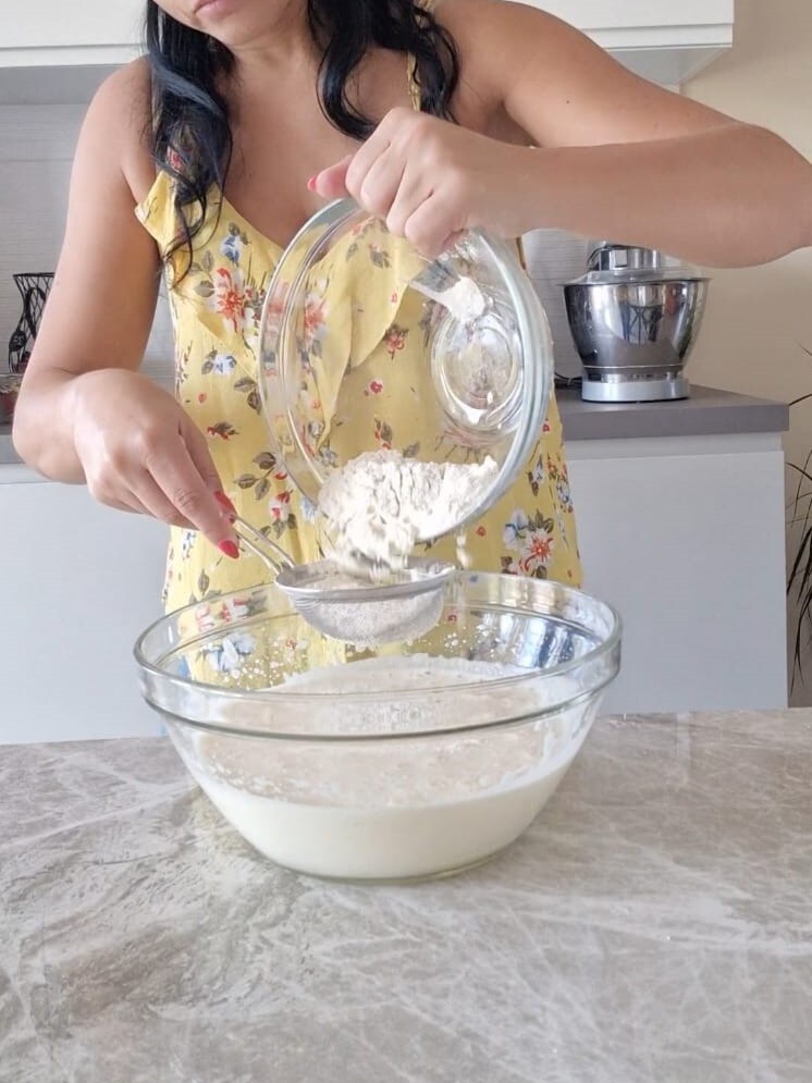 À ce stade, ajoutez la farine tamisée en plusieurs fois.
