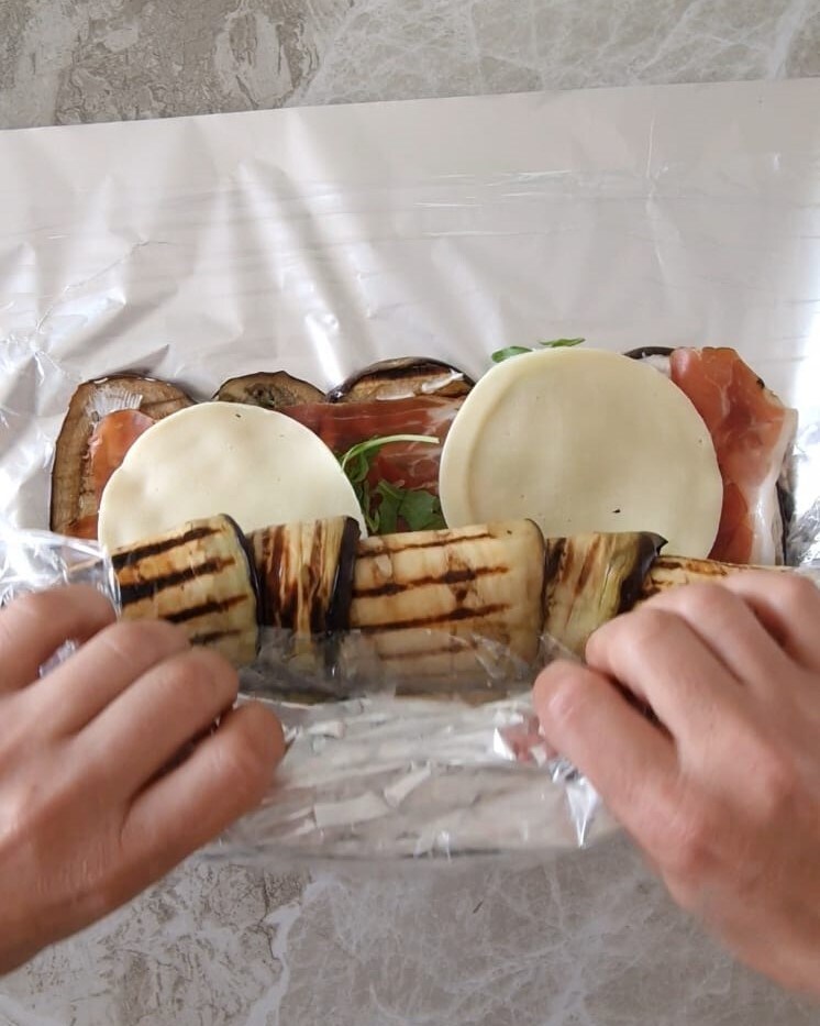 Le roulé d’aubergines avec roquette et speck peut être conservé au réfrigérateur jusqu’au lendemain bien couvert avec du film plastique.