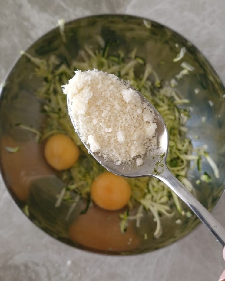 Pressez-les bien et mettez-les dans un saladier, puis ajoutez le sel, les œufs et le parmesan.