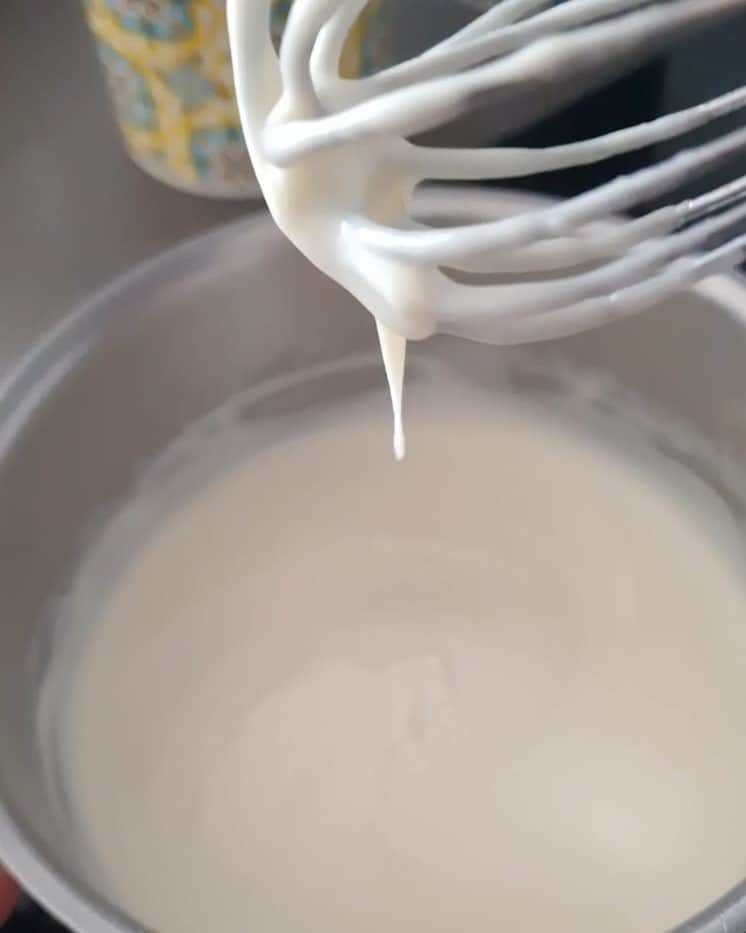 Mélangez jusqu’à ce que le mélange épaississe. Cela prendra environ 7 minutes, après quoi retirez du feu.