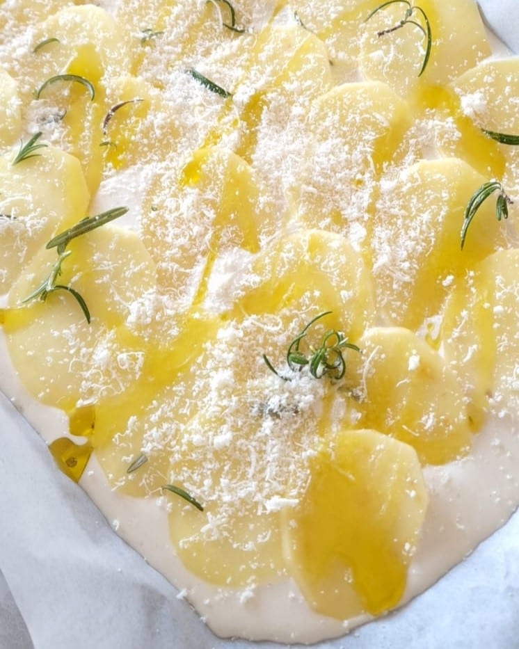 La recette d’aujourd’hui est parfaite en toutes saisons, elle est également idéale pour ceux qui ont peu d’expérience en cuisine. Elle peut être servie comme entrée, accompagnement de viande ou de poisson, ou simplement seule comme collation. On prépare une pâte avec la farine, l’eau, le sel et une cuillère à soupe de Philadelphia, sans œufs et sans levure. On mélange le tout avec une simple fourchette, on dispose les pommes de terre et on enfourne!