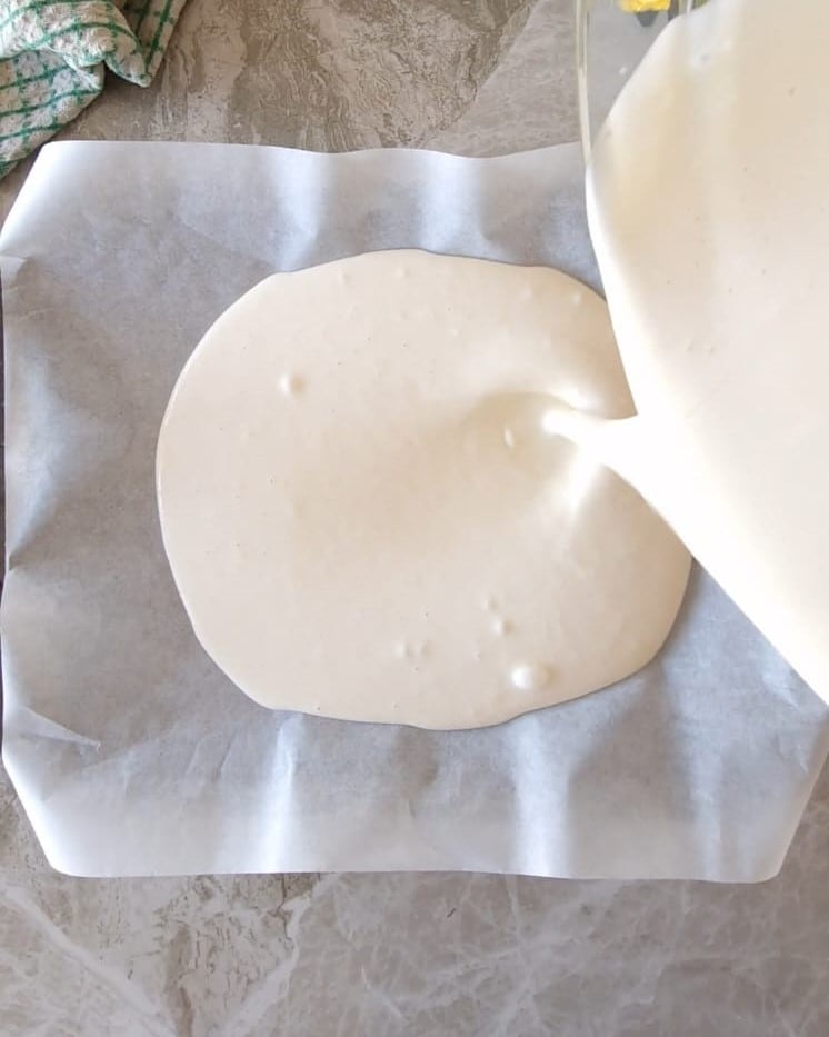 Versez la pâte dans un moule recouvert de papier sulfurisé de 24×15 cm ou recouvrez-le de papier sulfurisé.