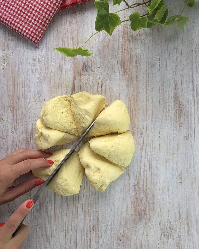 Après ce temps, faites la division en 8 boules d’environ 100 grammes. Mettez-les à l’abri sous un torchon en lin ou dans un récipient, les unes à côté des autres, où elles resteront pendant encore 3 heures.