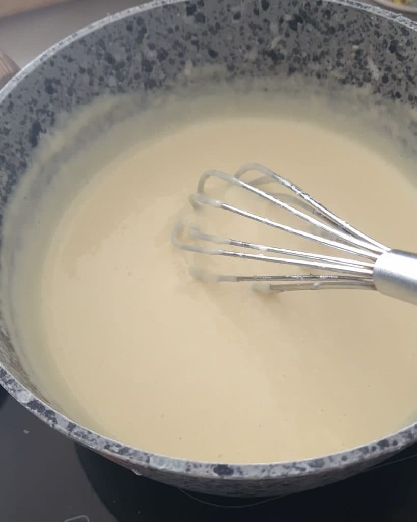 Puis transférez sur le feu et mélangez avec un fouet jusqu’à ce que ça épaississe.