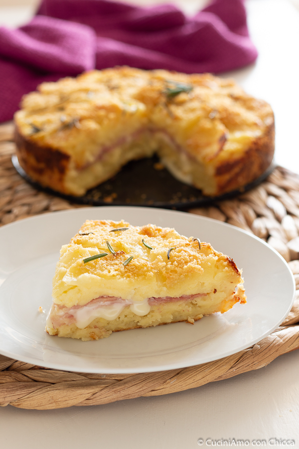 La TARTE DE POMMES DE TERRE AU JAMBON ET FROMAGE est un plat principal riche en saveurs et super facile à préparer ! Elle se réalise avec des ingrédients que nous avons tous à la maison : pommes de terre, œufs, chapelure et épices. La garniture est vraiment spéciale, fondante et gourmande, elle plaira à toute la famille ! Avez-vous déjà préparé les sfogliatine avec speck et les boulettes de pommes de terre ? Maintenant je vous laisse avec la recette, gros bisous Chicca