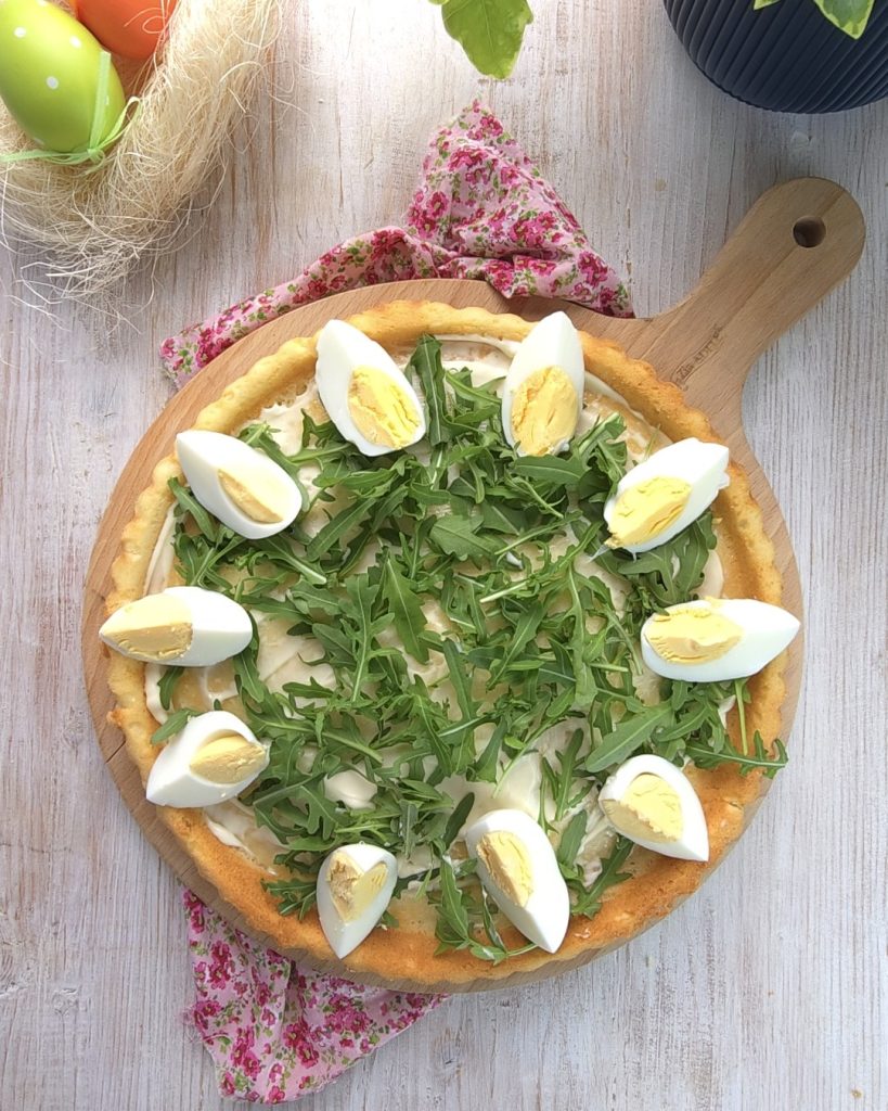 Tarte Pasqualina une recette parfaite à inclure dans le menu de Pâques si vous cherchez d’autres entrées de Pâques sur le blog vous n’avez que l’embarras du choix ! La tarte Pasqualina se distingue par sa base moelleuse et humide, semblable à celle d’un genoise. Elle est également particulièrement polyvalente, il y a quelque temps j’avais préparé la tarte moelleuse au pesto avec tomates et mozzarella, la recette de base se prête bien à des garnitures aussi bien chaudes que froides. Dans la recette d’aujourd’hui, je vous propose une farce avec mayonnaise, salami et œufs durs.