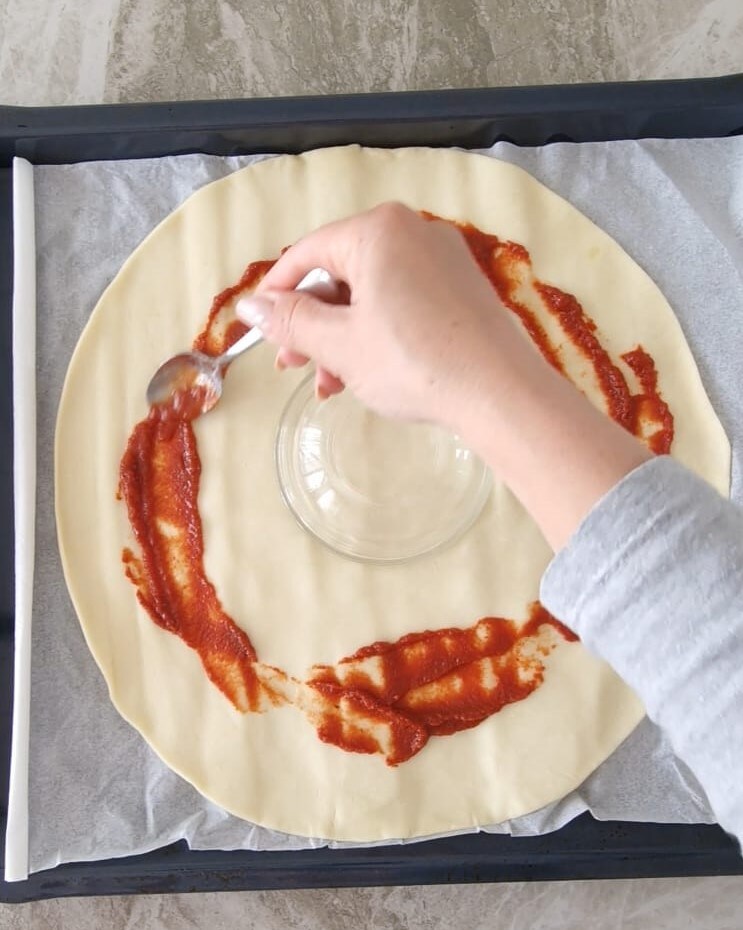Assaisonnez le pourtour de la pâte avec la sauce tomate.