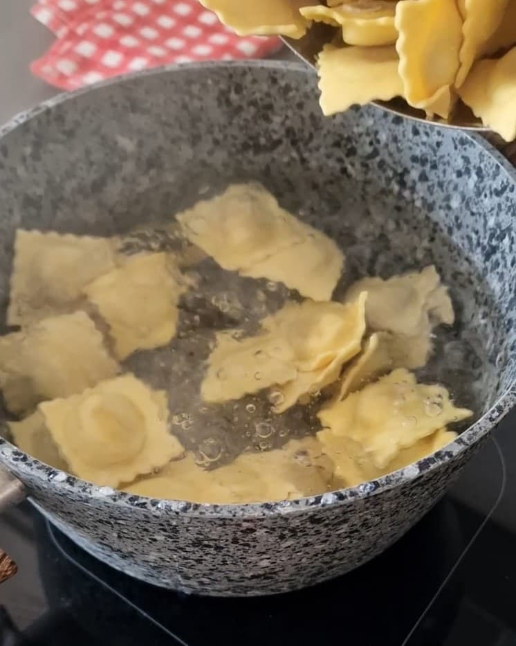 Cuisez les tortelli dans de l’eau bouillante salée.