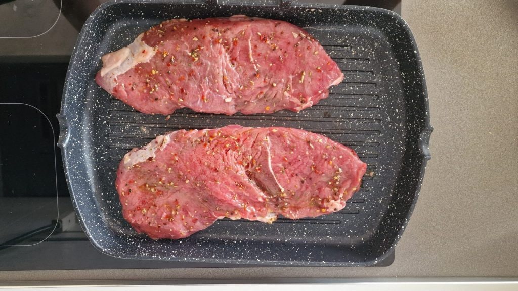 Préparer le gril, puis préchauffer à feu vif. Cuire la viande pendant environ 5-6 minutes pour obtenir une cuisson à point, ajuster en fonction de l’épaisseur de la viande; puis retirer la viande et la laisser reposer 5 minutes.