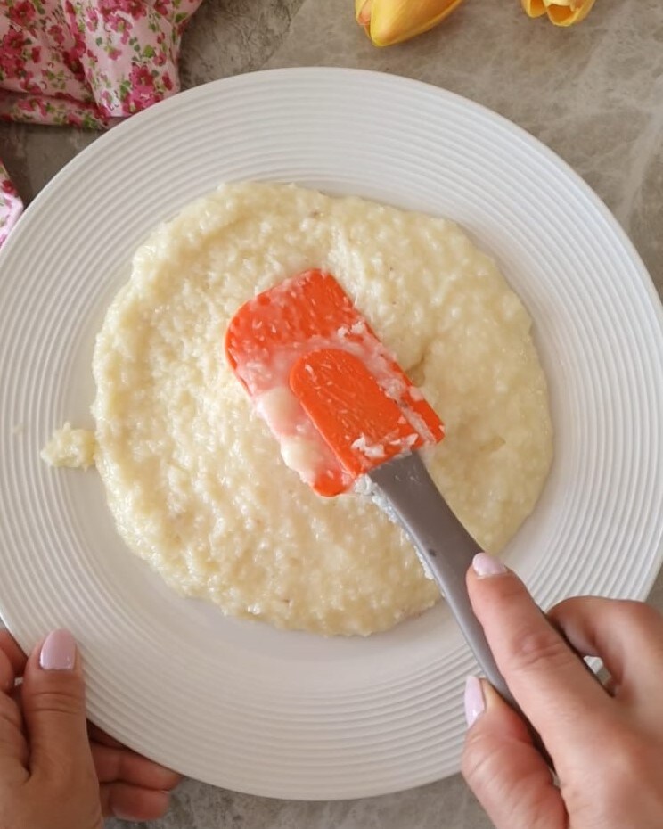 Ajoutez la noix de coco et faites cuire pendant 6-7 minutes ou jusqu’à ce que la pâte ne colle plus aux parois, ensuite laissez refroidir au réfrigérateur.
