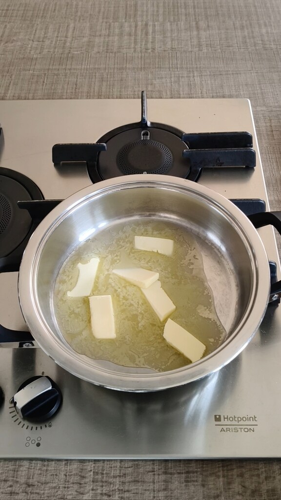 Faire fondre le beurre à feu moyen/doux, préalablement coupé en morceaux (ainsi il fondra plus vite).