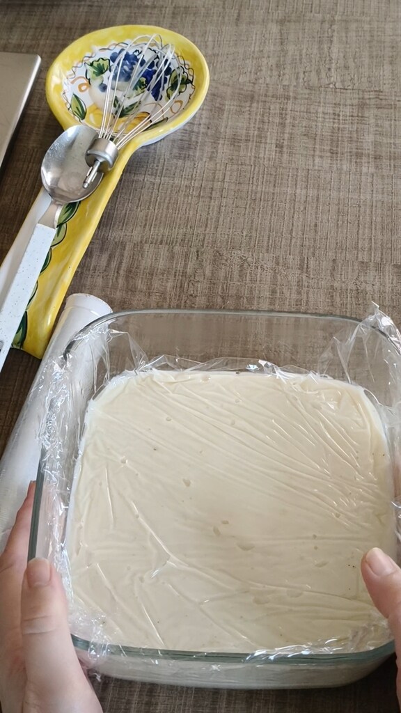 Transvaser la béchamel veloutée dans un contenant propre, couvrir avec un film plastique sans PVC et laisser tiédir avant de placer au réfrigérateur.