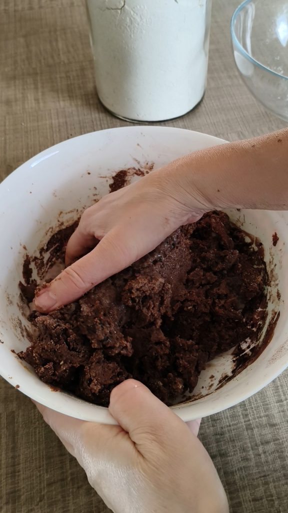 Finir de travailler la pâte dans le bol qui sera légèrement collante mais maniable.