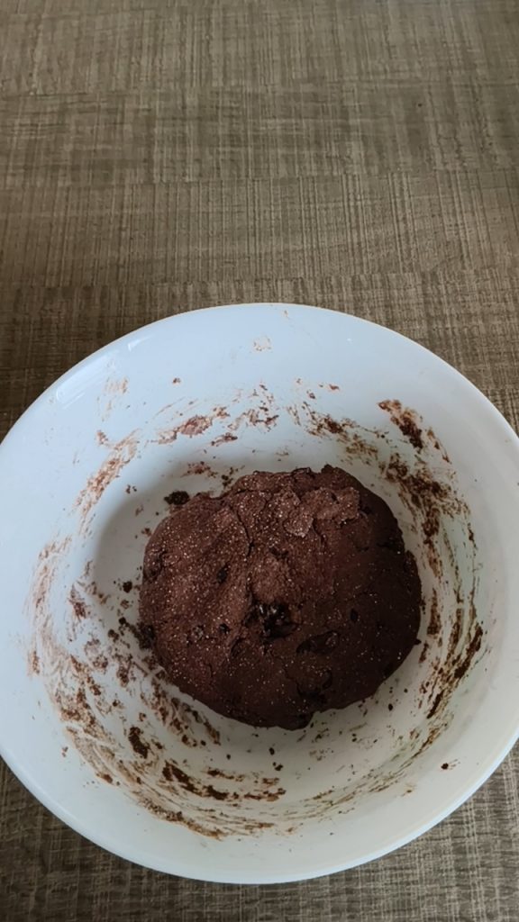 La pâte est à base de yaourt blanc nature, farine d’avoine et cacao amer, avec l’ajout de pépites de chocolat noir et de canneberges séchées qui apportent une douceur naturelle et un agréable contraste.