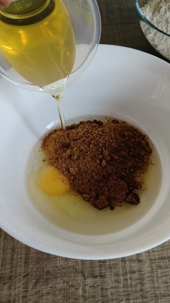 Verser dans un bol les œufs et le sucre de canne; mélanger avec un fouet à main ou une fourchette.