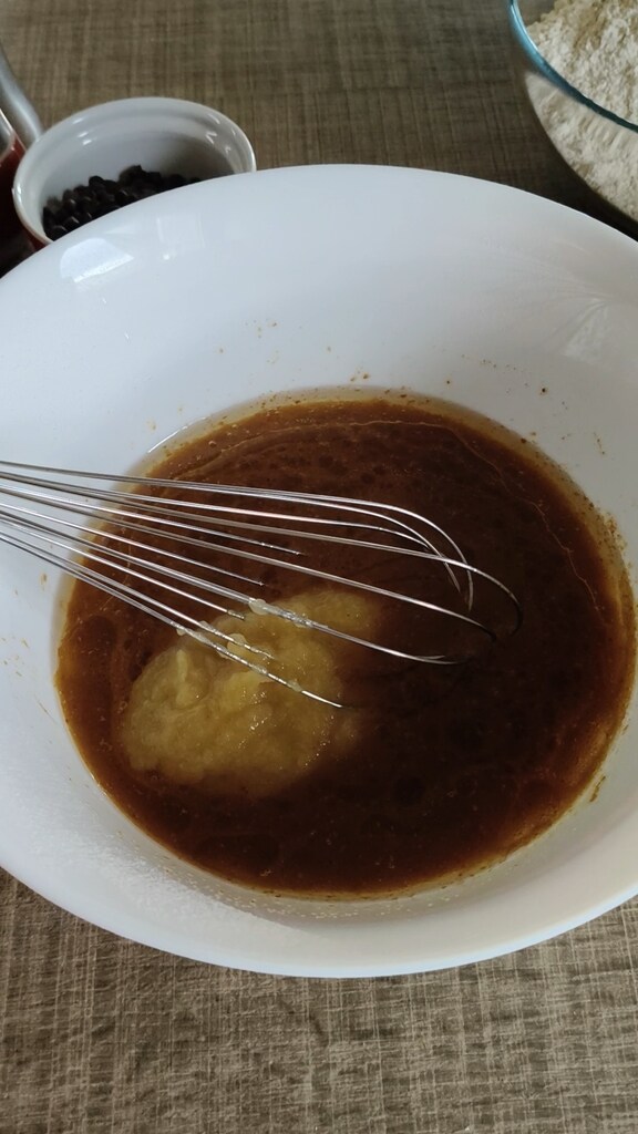 Ajouter la compote de pomme et mélanger pour amalgamer.