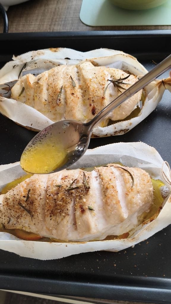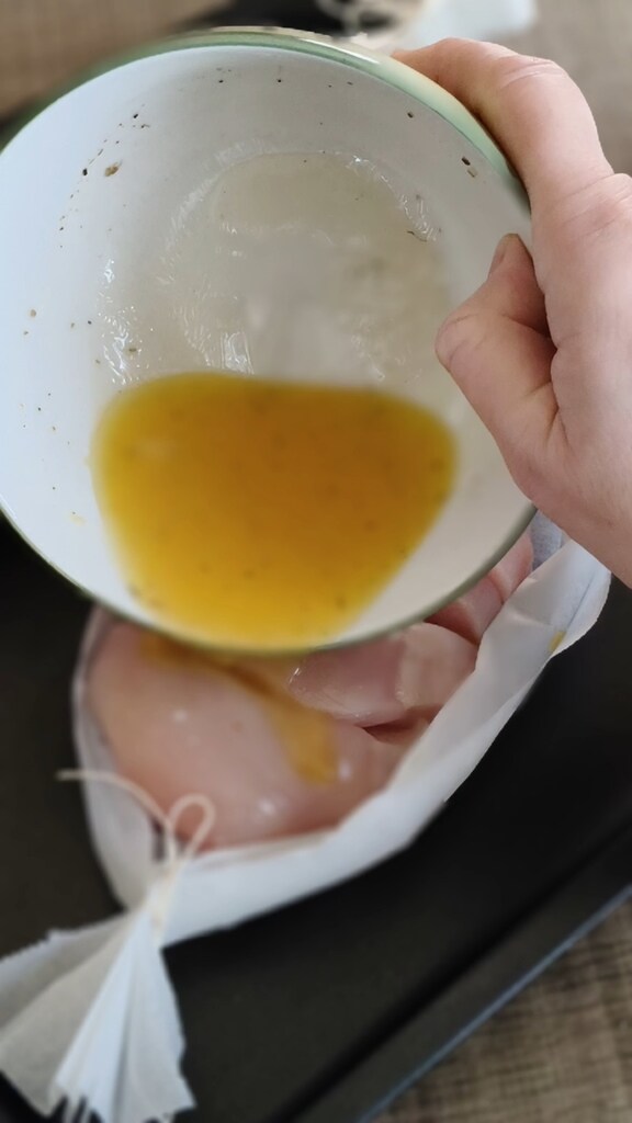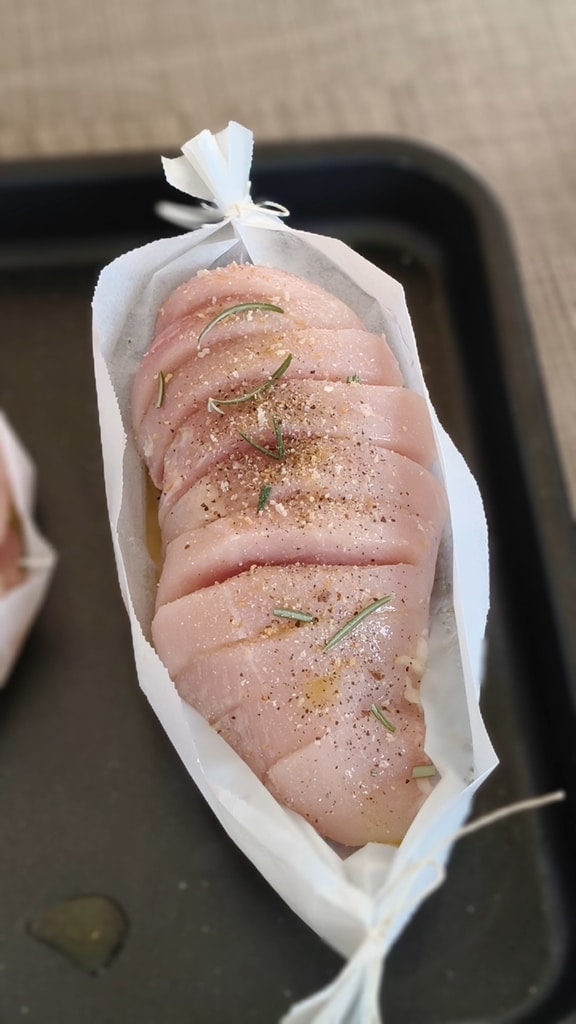 Le blanc de poulet glacé aux agrumes, assaisonné avec des tranches d’oranges et de citron et enveloppé dans une papillote pratique, est une solution parfaite pour un déjeuner ou un dîner frais et savoureux. En quelques étapes, et avec peu d’ingrédients, on obtient un plat léger et riche en saveurs, idéal aussi pour ceux qui ont peu de temps mais ne veulent pas renoncer à un plat savoureux et nourrissant.