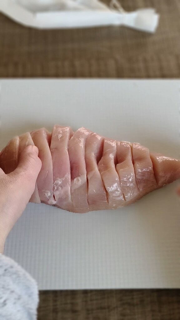 Incisez les blancs de poulet sans aller jusqu’au fond.