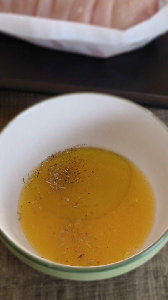 Assaisonnez les blancs de poulet avec du sel, du poivre et du romarin et faites cuire dans un four chaud à 180°C pendant au moins une demi-heure. Passez ensuite quelques minutes sous le gril.