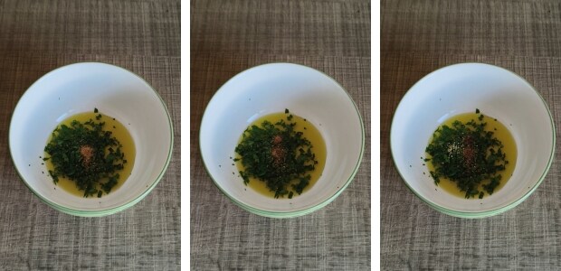 – Éplucher les carottes et les couper d’abord en deux, puis chaque moitié en 2. Mettre l’huile et le persil frais lavé et haché dans un bol.