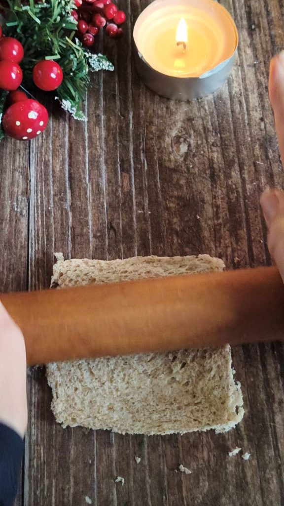 Rouler sur elles-mêmes les tranches de pain de mie.