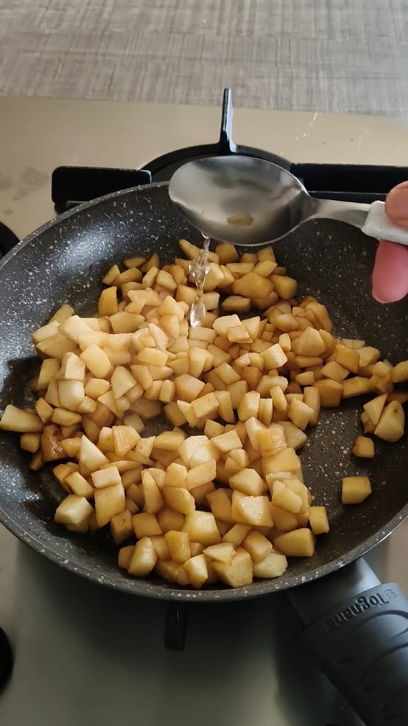 Ajouter la cuillère à soupe d’eau et cuire les pommes pendant environ 10/15 minutes.