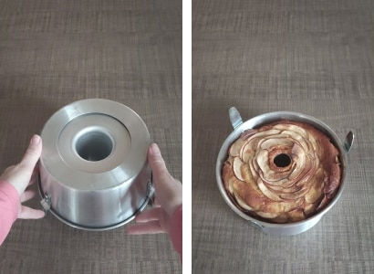 – Retournez le moule sur ses pieds et attendez qu’il refroidisse complètement avant de démouler le chiffon cake aux pommes.