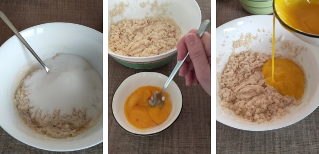– Ajoutez le sucre puis les jaunes d’œufs petit à petit après les avoir mélangés entre eux.