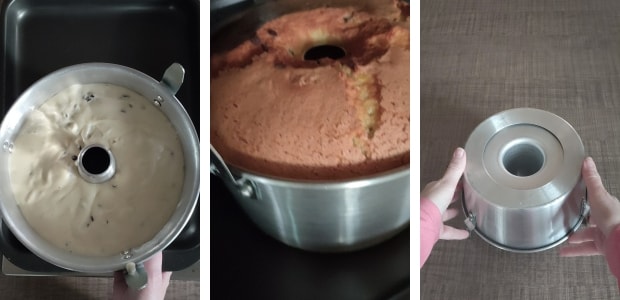 Vous avez besoin du moule à gâteau américain avec des pieds car le chiffon cake doit refroidir à l’envers.