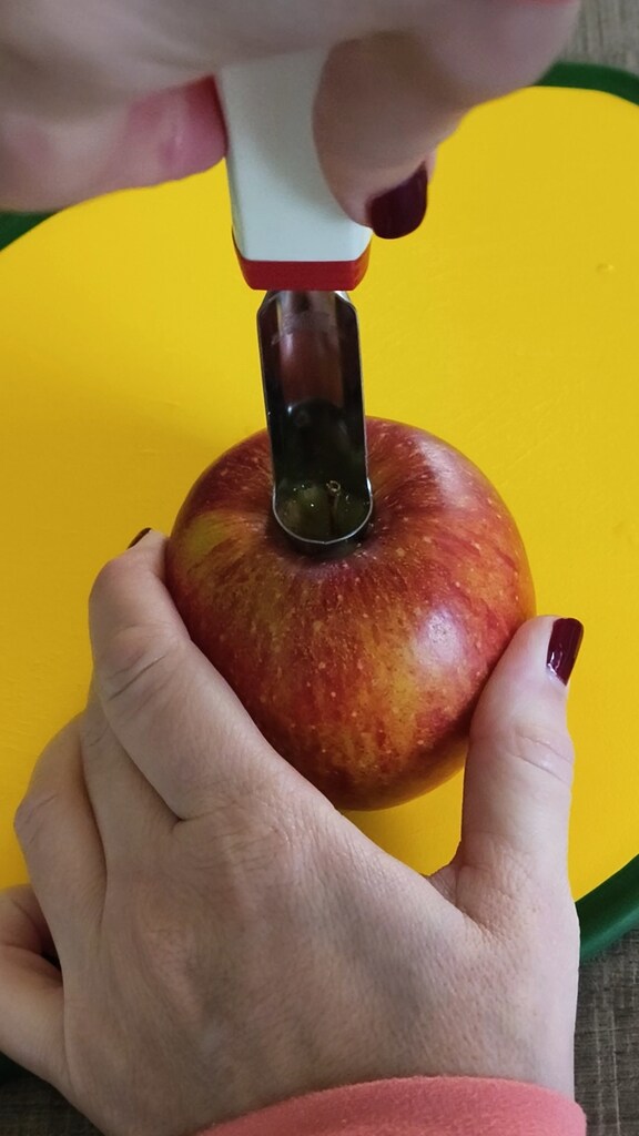 Retirer le trognon à l’aide du vide-pomme.