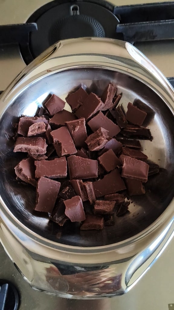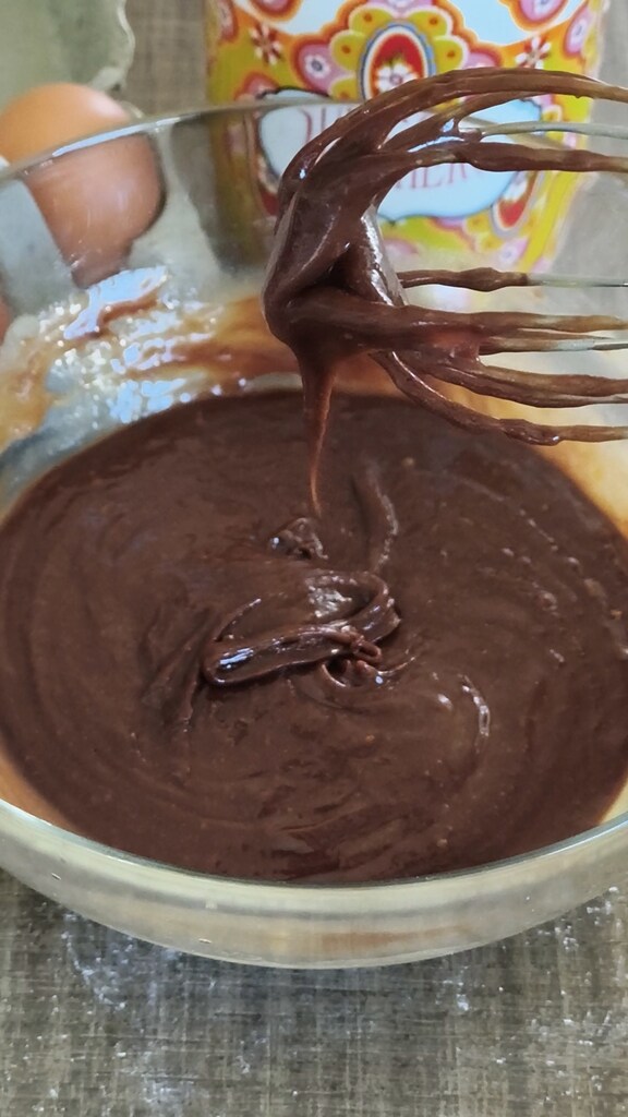 Incorporer le chocolat fondu et, si vous le souhaitez, une cuillère à soupe de jus d’orange.