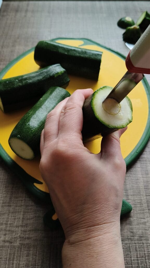 Quelles courgettes utiliser? Les courgettes moyennes et droites sont parfaites à vider avec le vide-pomme. Si vous préférez, vous pouvez aussi utiliser des courgettes rondes, en ajustant les temps de cuisson.