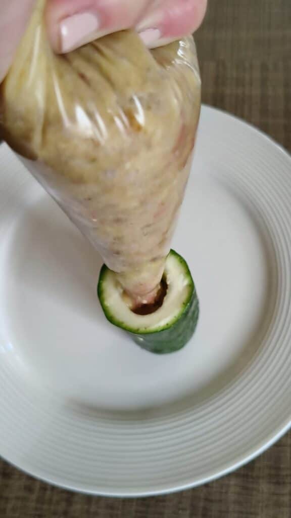 Bien remplir chaque tronçon, en essayant de presser un peu le condiment.