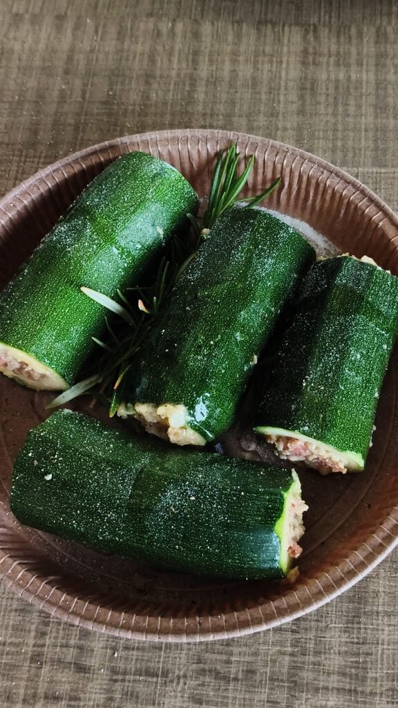 Dans cette version, cuites dans la friteuse à air, les courgettes restent tendres à l’intérieur et légèrement croustillantes à l’extérieur, avec une farce crémeuse et riche en saveurs.
