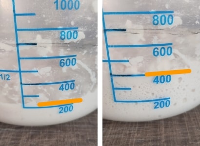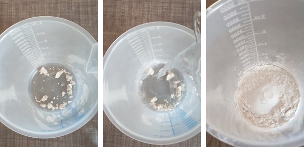Préparer le poolish avec l’eau, la levure, 10 g de sucre pris sur le total et 150 g de farine forte pris sur le total.