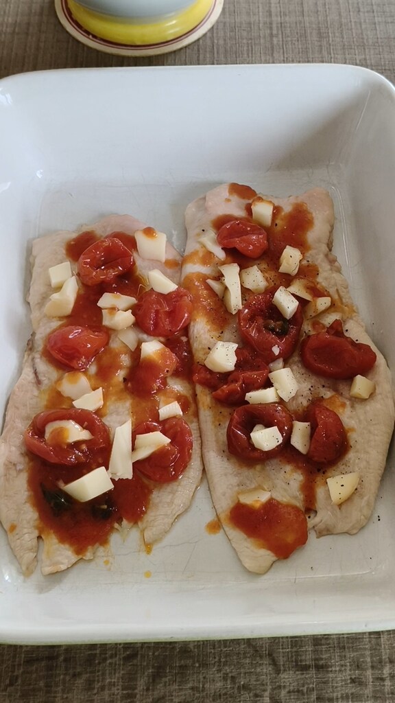 Le procédé est très rapide : on fait revenir les tomates cerises dans une casserole pour les parfumer et on passe les escalopes de dinde au four pendant 3 minutes. Lorsque nous assemblerons les ingrédients, nous obtiendrons un plat principal savoureux et pas du tout sec, grâce à la mozzarella.