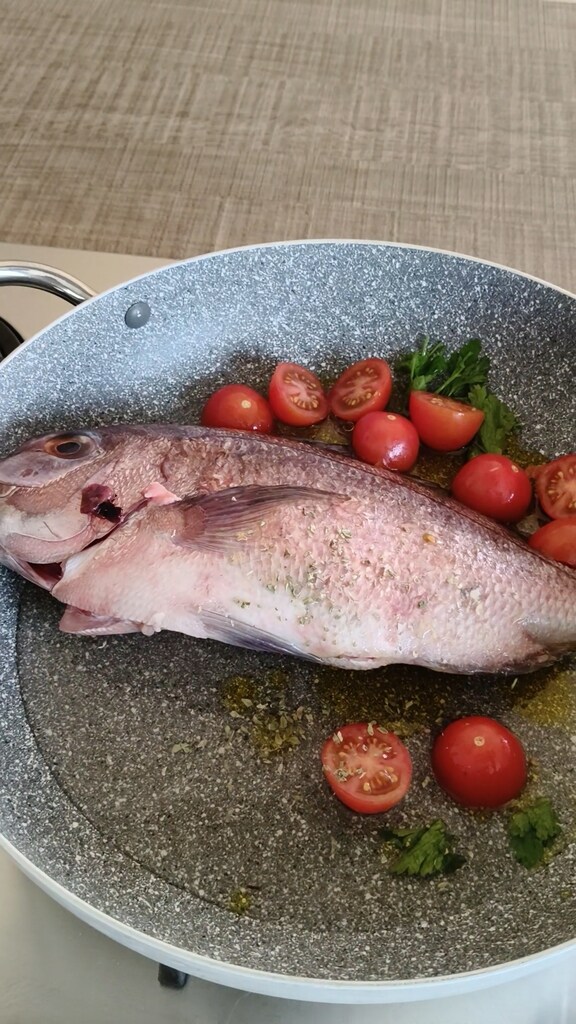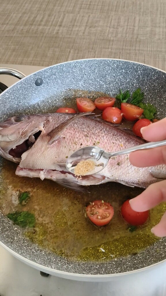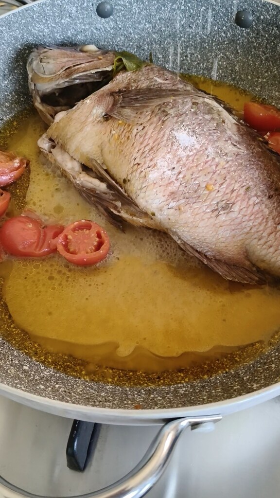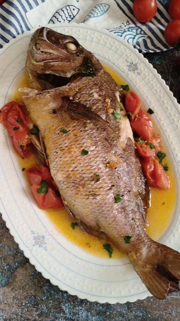 Servez la dorade dans un plat de service avec le bouillon, les tomates et un peu de persil frais haché. Ou, si vous préférez, désarêtez-la avant et servez.