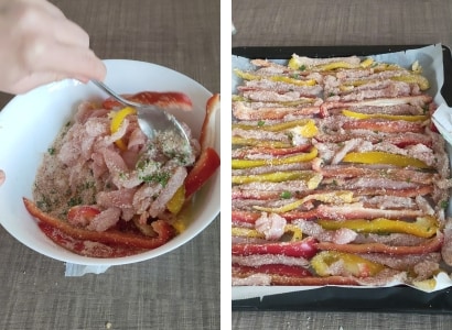 – Les émincés de poulet et poivrons peuvent être préparés à l’avance et ensuite réchauffés au micro-ondes ou à la poêle. À la place des épices pour rôtis, vous pouvez utiliser du paprika doux ou piquant