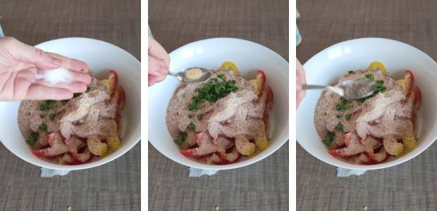 – Assaisonner avec le parmesan, la chapelure et le persil préalablement lavé, séché et haché.