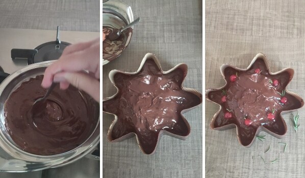 – Chauffer la crème à tartiner au bain-marie puis la verser dans une poche à douille et faire une petite entaille à l’extrémité.