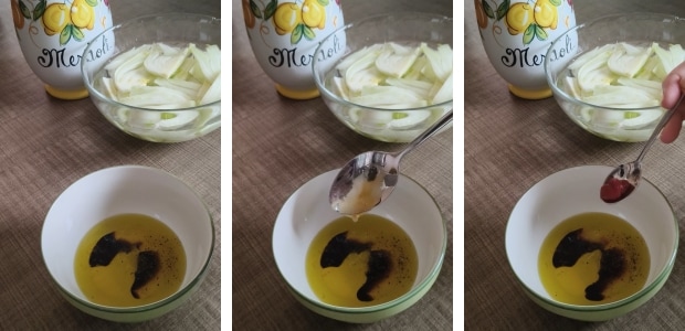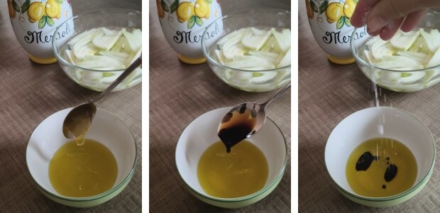 Émulsionner le tout avec une fourchette et verser l’assaisonnement sur les fenouils en essayant de bien mélanger pour les imprégner de saveurs.
