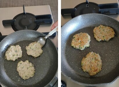 – Chauffer une poêle antiadhésive sans huile et cuire les galettes en prélevant la pâte à la cuillère en cuisant environ 3′ de chaque côté. Servir à volonté chaud ou froid.