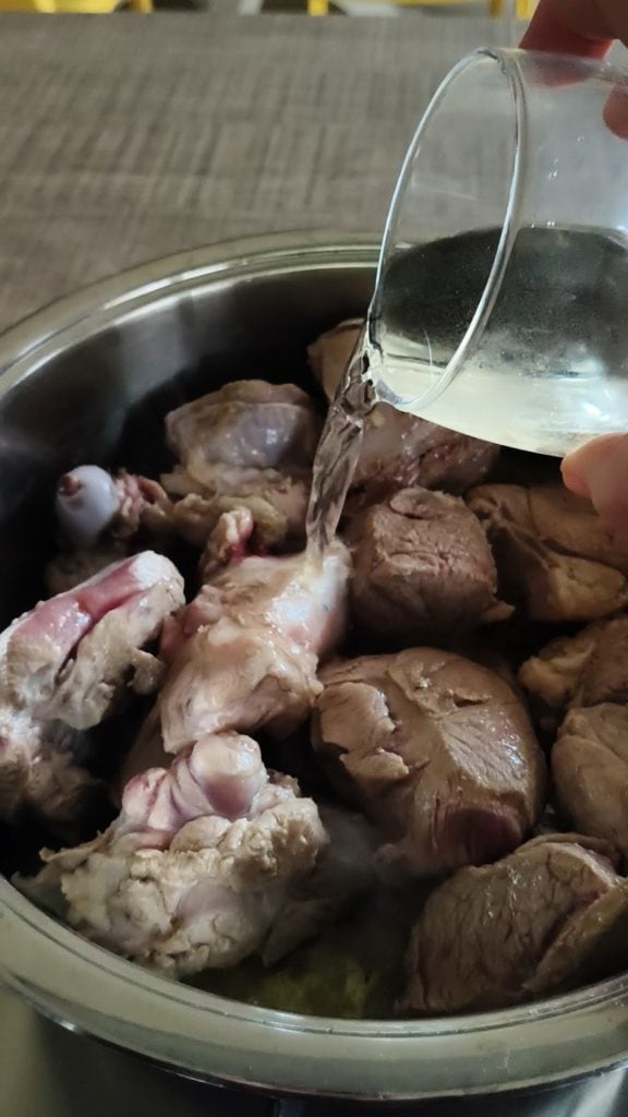 Ajouter l’eau, toujours avec le batteur en mouvement à basse vitesse.