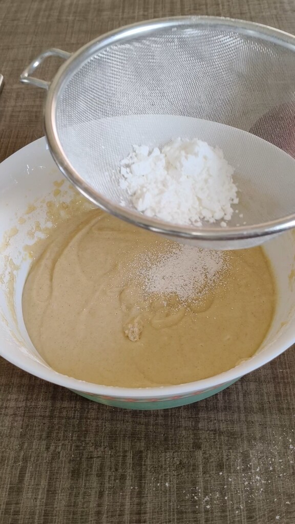 Tamiser également la levure directement sur la pâte puis l’incorporer avec des mouvements délicats de la spatule.
